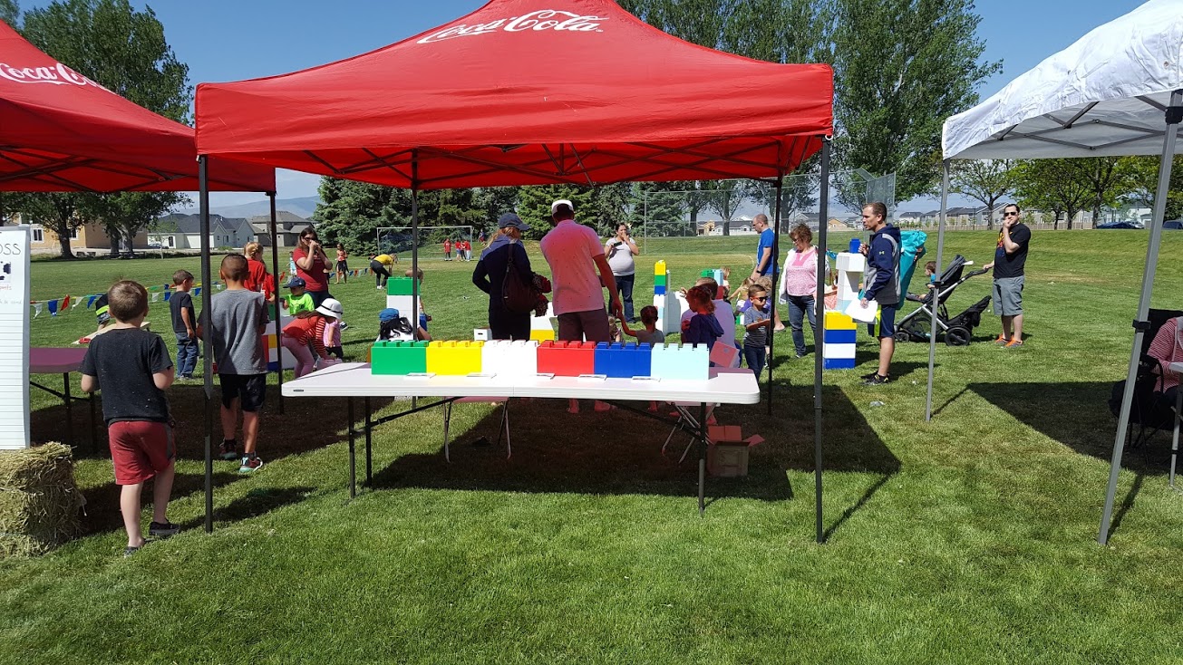 In case you missed it, Coconut Cove Indoor Playground, a Utah Amusement Center for kids ages 0 to 12 opened last week. It opened just in time to attend Vineyard Heritage days with a vendor booth. Coconut Cove showed up with many of its extra blocks that it had used to build its kids birthday party rooms.
