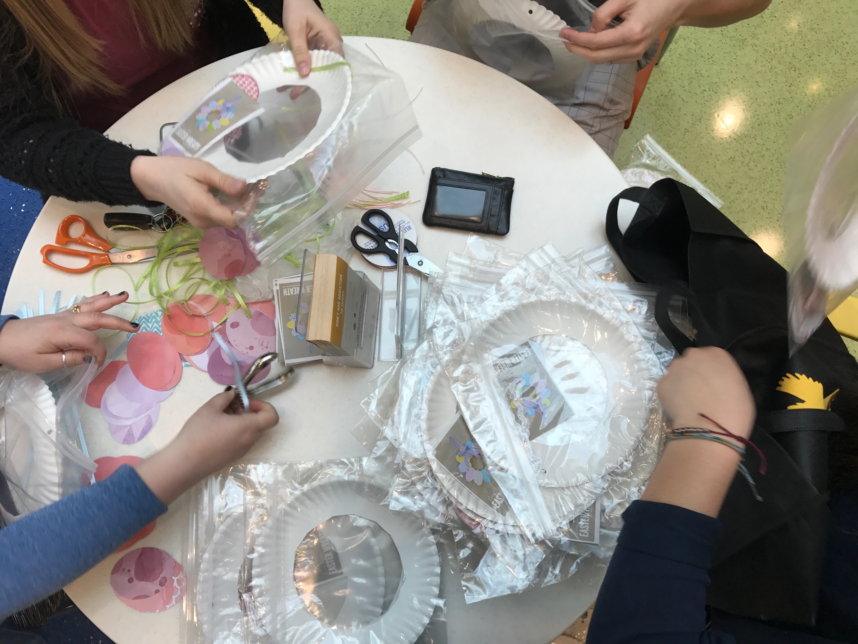 [et_pb_column type=”4_4″][et_pb_text admin_label=”Text”]Last weekend, our Events Planning team made up of BYU students, went to Primary Children’s Hospital in Salt Lake City to deliver craft kits from a recent service project at Coconut Cove. In the month of March, Coconut Cove hosted two Family Night events where families packaged the supplies for Easter egg wreath craft kits. The events planning team contacted the hospital, got the supplies for the service project, and led the activity during Family Night. They planned the activity so Coconut Cove customers would have the opportunity to get involved in an outreach project for the community.